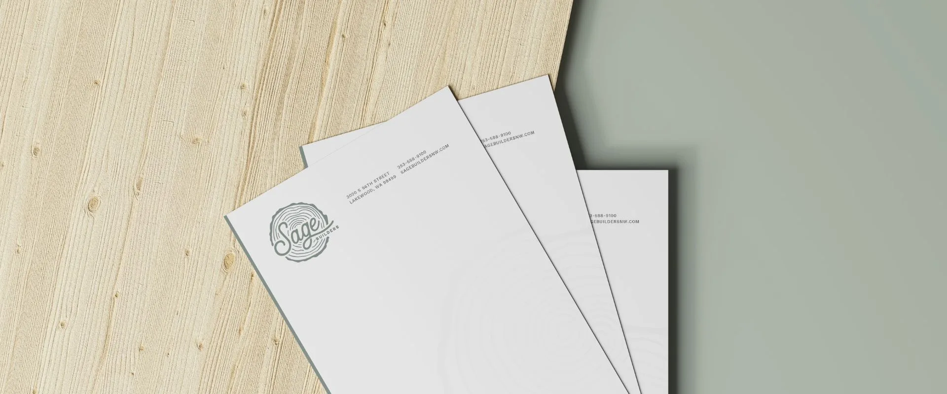 Our first step was sitting down with Tammy to dig into her vision. She wanted Sage Builders to feel timeless yet modern, grounded yet approachable. Her love for the Pacific Northwest and the beauty of natural wood inspired everything from the logo’s wood-grain texture to the calming sage-green palette.